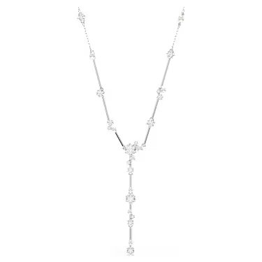 Swarovski Constella Y necklace, Crystal pearl, Round cuts, White, Rhodium plated