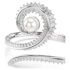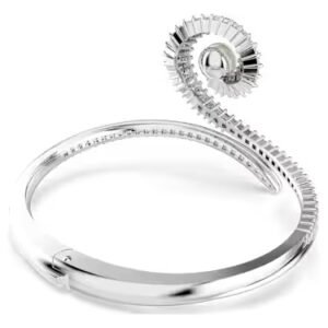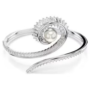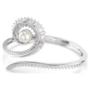 Ariana Grande x Swarovski bangle, Crystal pearl, Baguette cut, White, Rhodium plated