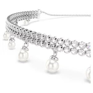 Ariana Grande x Swarovski choker, Crystal pearl, Round cut, White, Rhodium plated