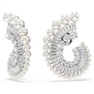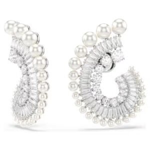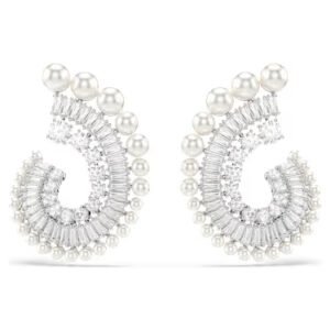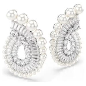 Ariana Grande x Swarovski drop earrings, Crystal Pearl, Mixed cuts, White, Rhodium plated