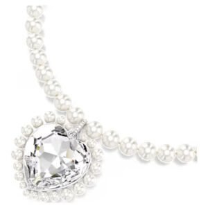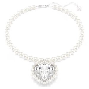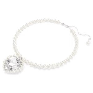 Ariana Grande x Swarovski necklace, Crystal pearl, Heart cut, Heart, White, Rhodium plated