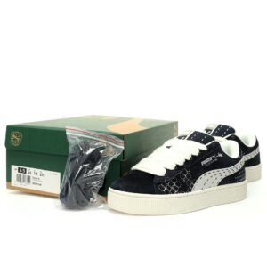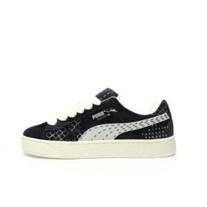 puma suede low xl”beige black”Turn the wool into navy blue and light gray embroidery