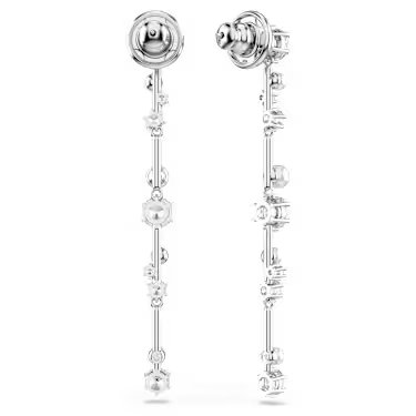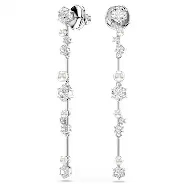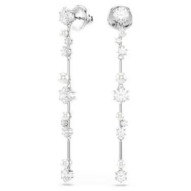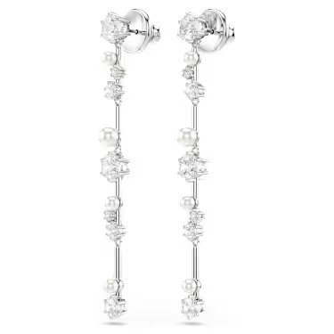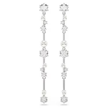 Swarovski Constella drop earrings, Crystal pearl, Round cuts, White, Rhodium plated
